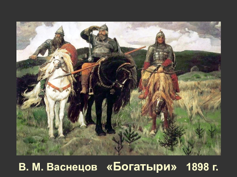 Слайд 10В. М. Васнецов «Богатыри» 1898 г.