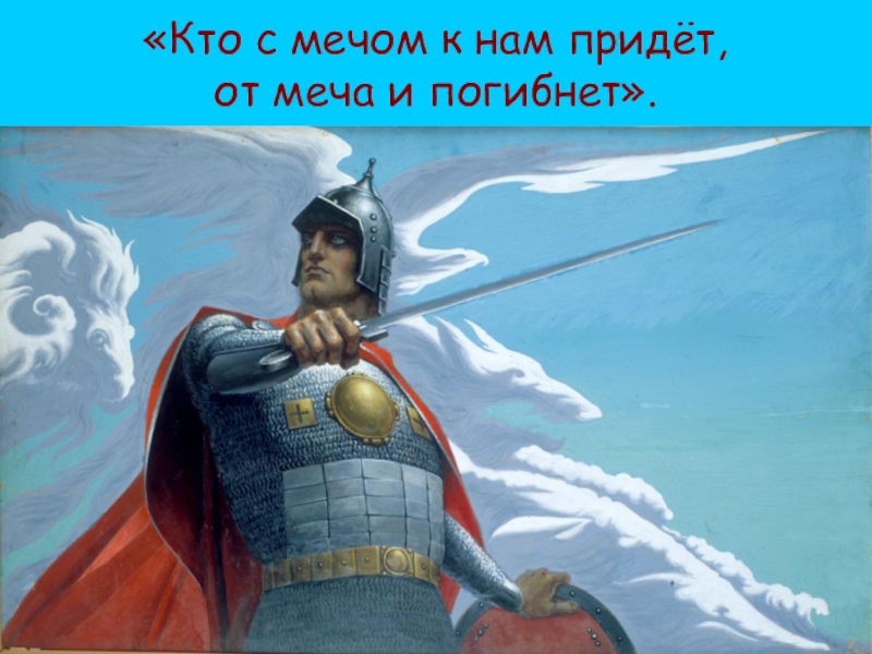 Слайд 16«Кто с мечом к нам придёт, от меча и погибнет».