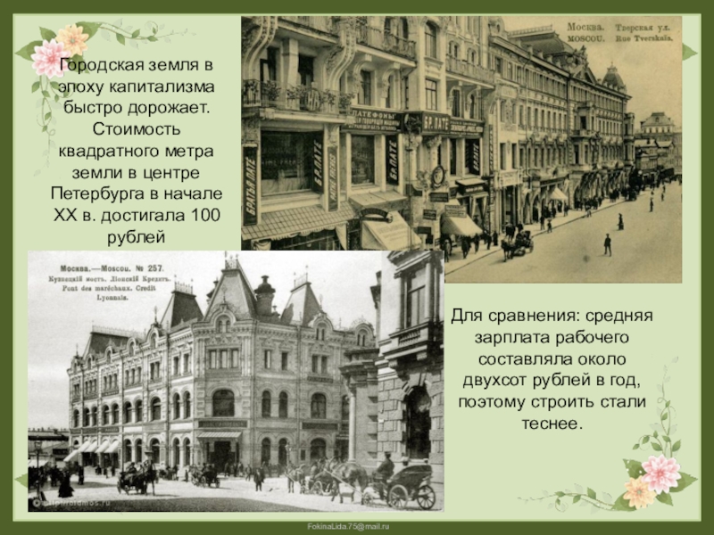 Для сравнения: средняя зарплата рабочего составляла около двухсот рублей в год, поэтому строить стали теснее.
