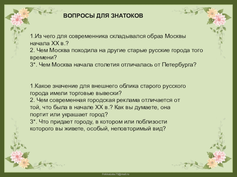 3*. Чем Москва начала столетия отличалась от Петербурга?