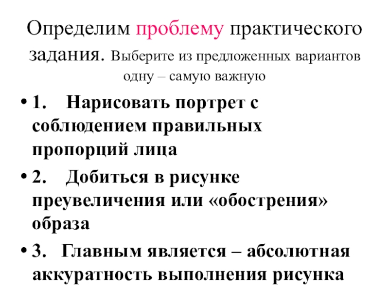 1. Нарисовать портрет с соблюдением правильных пропорций лица