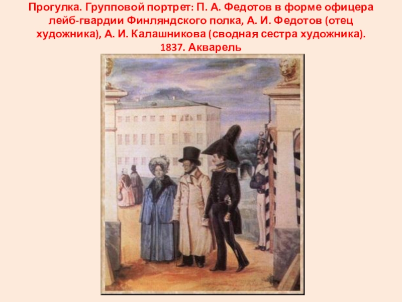 Слайд 7Прогулка. Групповой портрет: П. А. Федотов в форме офицера лейб-гвардии Финляндского