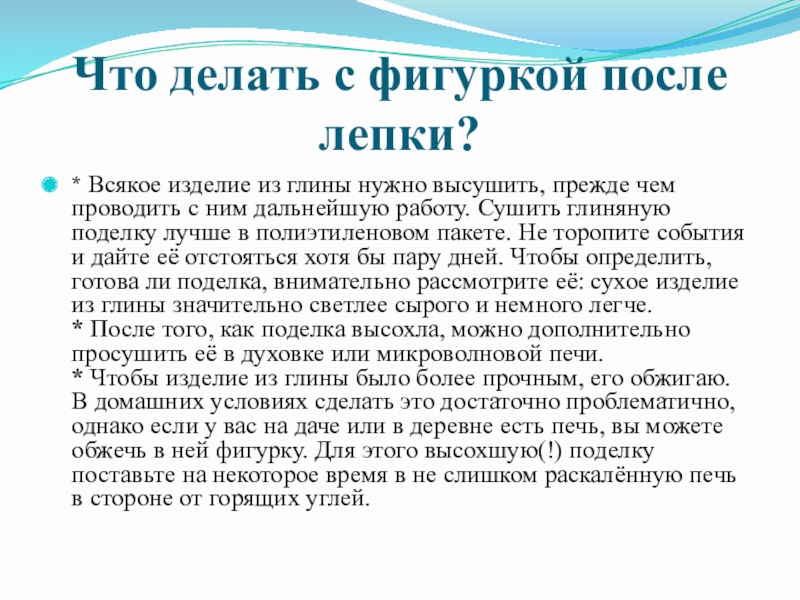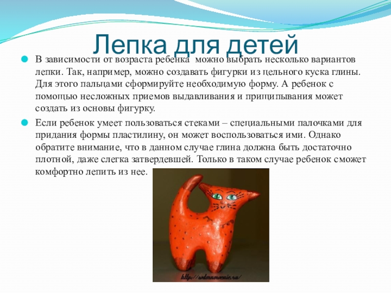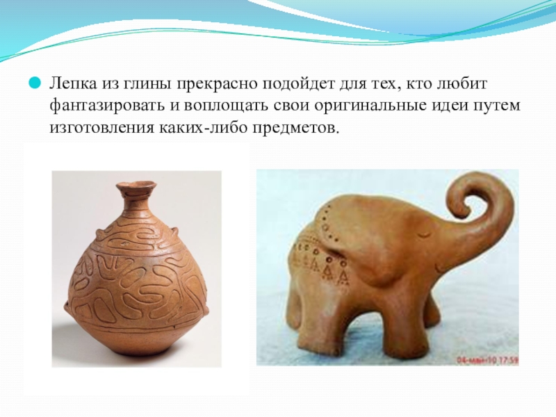 Слайд 3Лепка из глины прекрасно подойдет для тех, кто любит фантазировать и