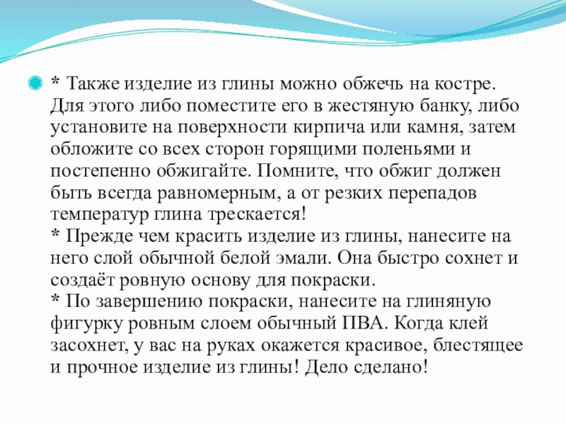 Слайд 9* Также изделие из глины можно обжечь на костре. Для этого либо