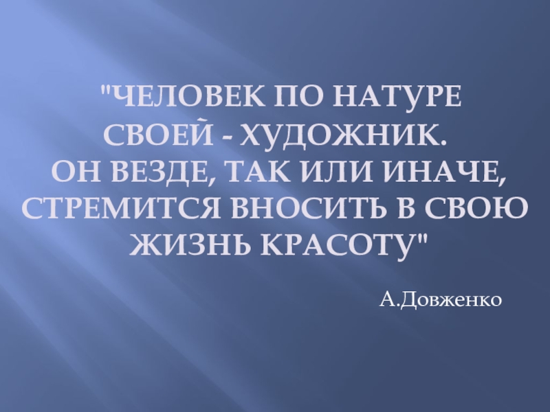 "Человек по натуре  своей - художник.  Он везде, так или иначе,  стремится вносить в свою  жизнь красоту"А.Довженко