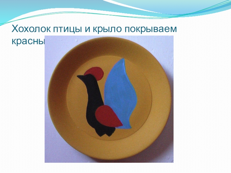 Слайд 9Хохолок птицы и крыло покрываем красным цветом