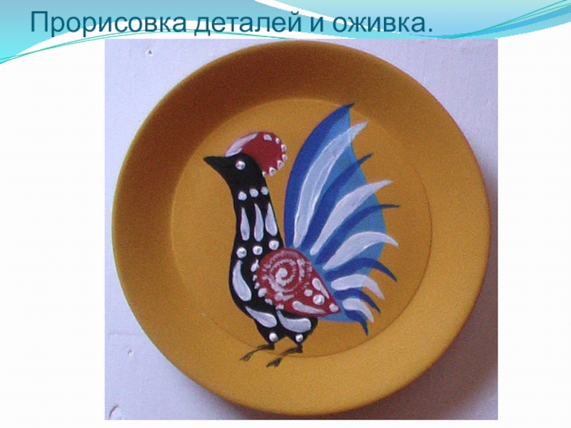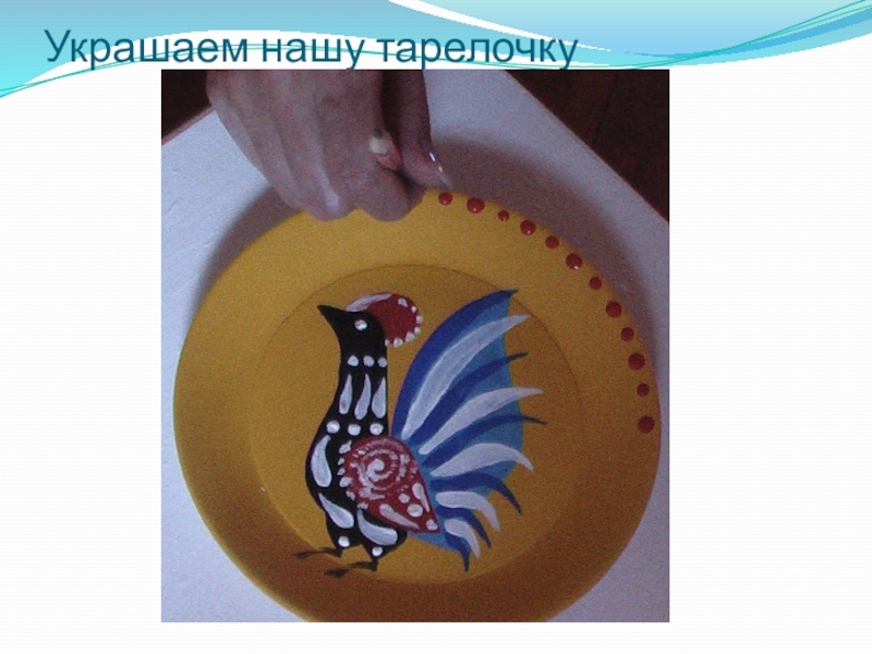 Слайд 1Роспись деревянной тарелочки / с использованием элементов ГОРОДЦА/