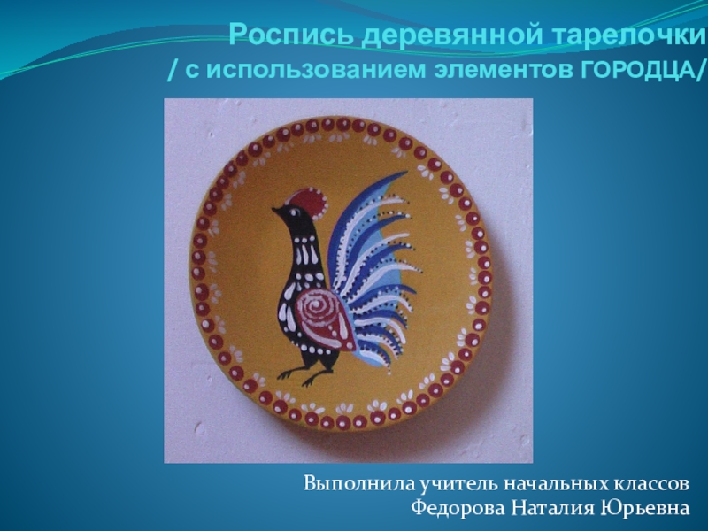 Роспись деревянной тарелочки / с использованием элементов ГОРОДЦА/Выполнила учитель начальных классовФедорова Наталия Юрьевна