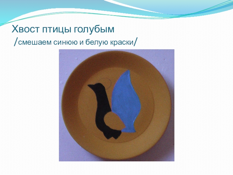Слайд 8Хвост птицы голубым /смешаем синюю и белую краски/
