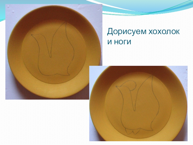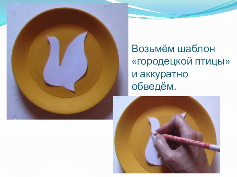 Слайд 4Возьмём шаблон «городецкой птицы» и аккуратно обведём.