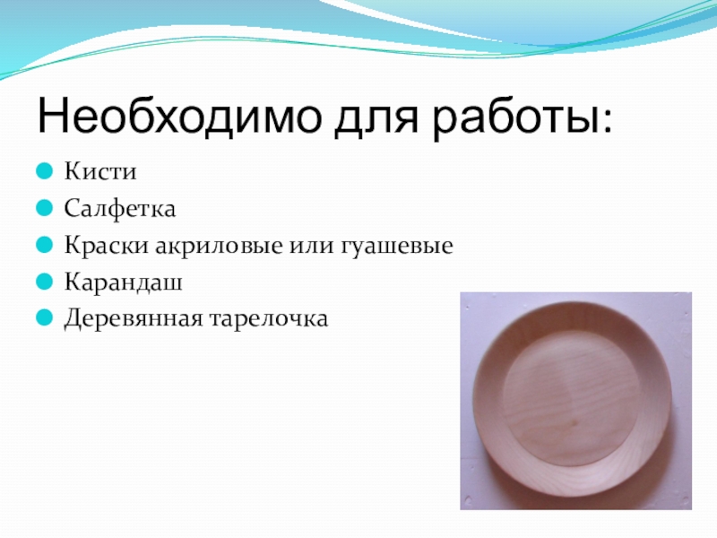 Необходимо для работы:КистиСалфеткаКраски акриловые или гуашевыеКарандашДеревянная тарелочка