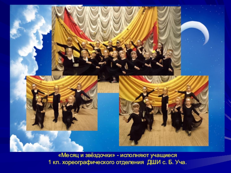 «Месяц и звёздочки» - исполняют учащиеся 1 кл. хореографического отделения ДШИ с. Б. Уча.