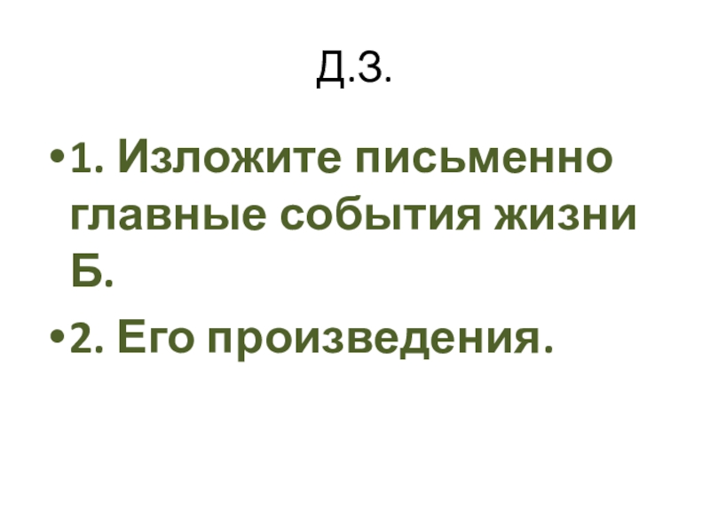 1. Изложите письменно главные события жизни Б.