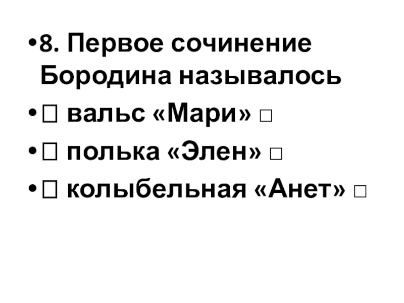 Слайд 258. Первое сочинение Бородина называлось