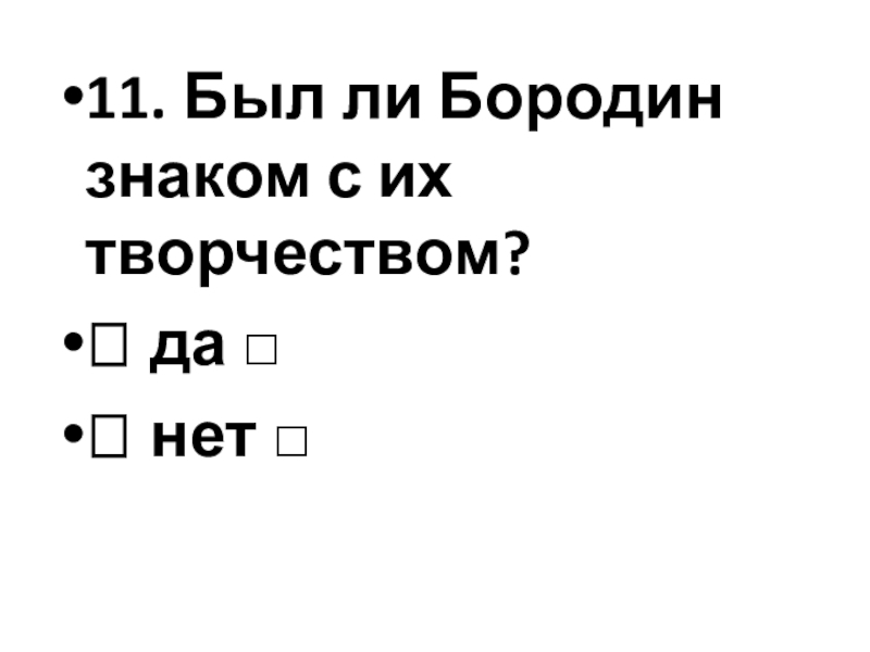 Слайд 2811. Был ли Бородин знаком с их творчеством?