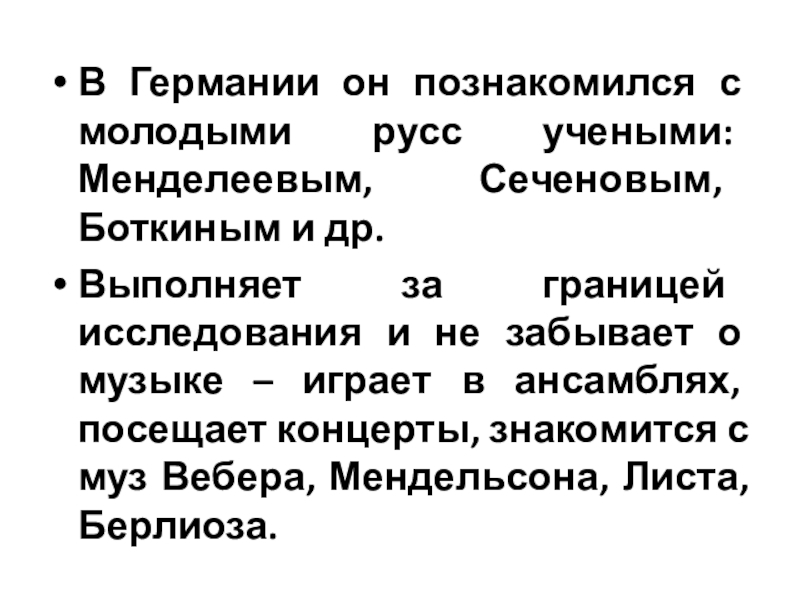 Слайд 9В Германии он познакомился с молодыми русс учеными: Менделеевым, Сеченовым, Боткиным
