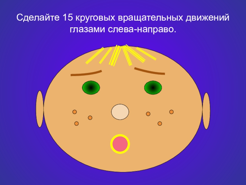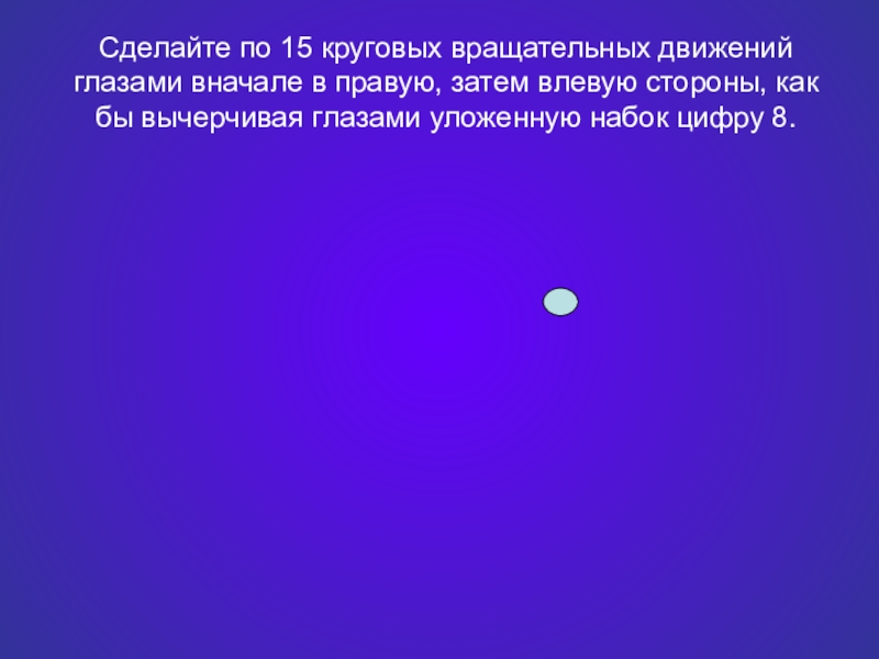 Слайд 4Сделайте 15 круговых вращательных движений глазами слева-направо.