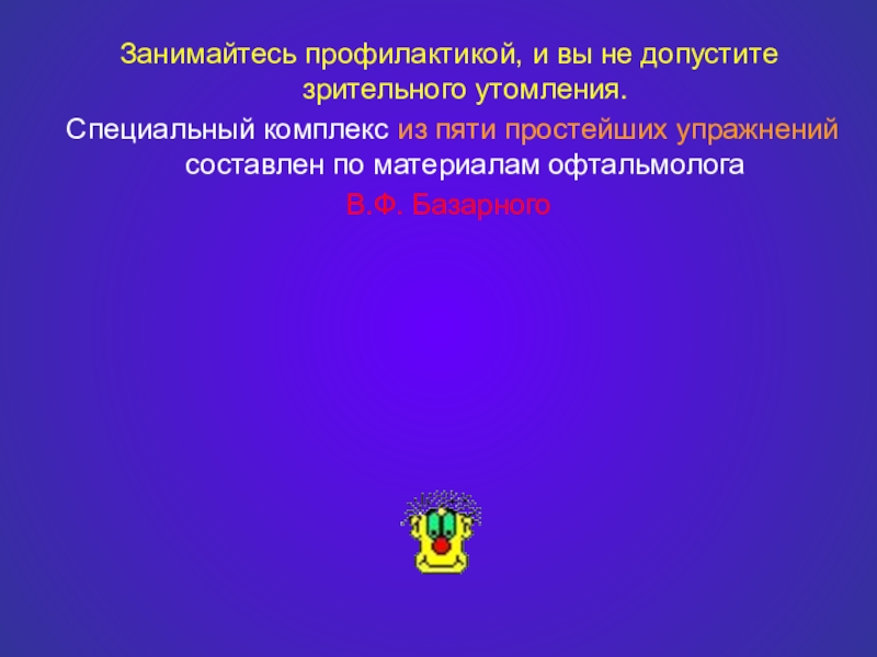 Слайд 7Занимайтесь профилактикой, и вы не допустите зрительного утомления.