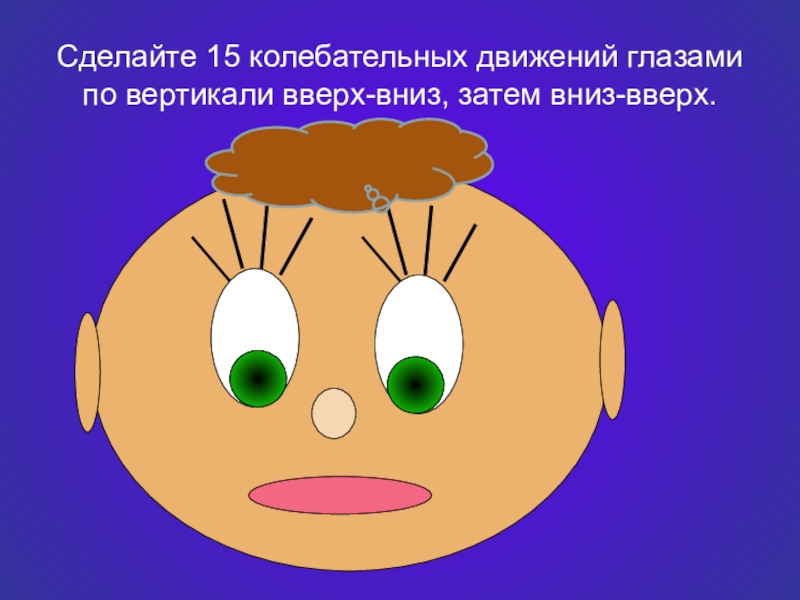 Сделайте 15 колебательных движений глазами по вертикали вверх-вниз, затем вниз-вверх.