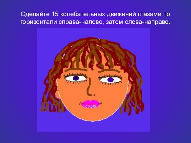 Слайд 2Сделайте 15 колебательных движений глазами по горизонтали справа-налево, затем слева-направо.