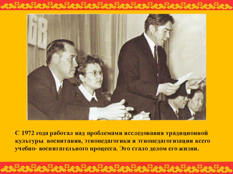 Слайд 6С 1972 года работал над проблемами исследования традиционной культуры воспитания, этнопедагогики