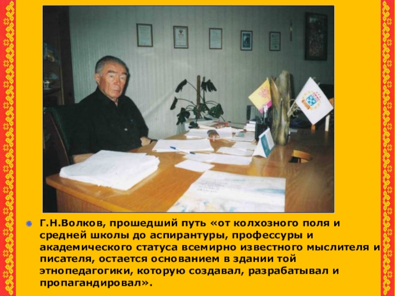Слайд 12Г.Н.Волков- знаковая фигура нашего времени… Результаты его подвижнеческого труда по значению