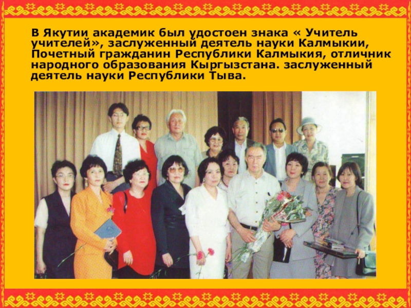 Слайд 18В Якутии академик был удостоен знака « Учитель учителей», заслуженный деятель