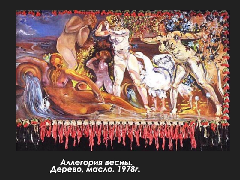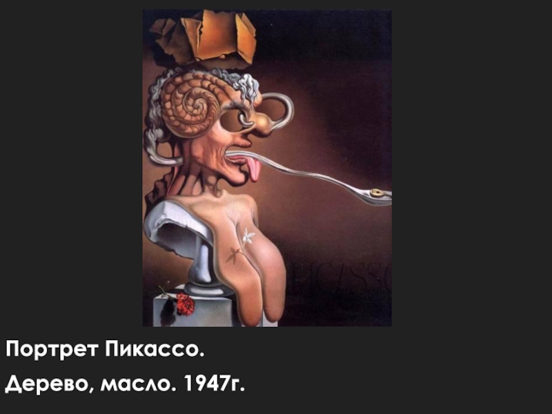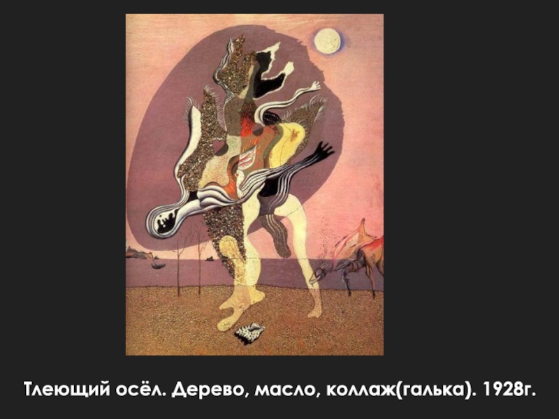 Слайд 8Тлеющий осёл. Дерево, масло, коллаж(галька). 1928г.