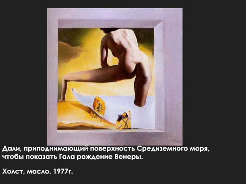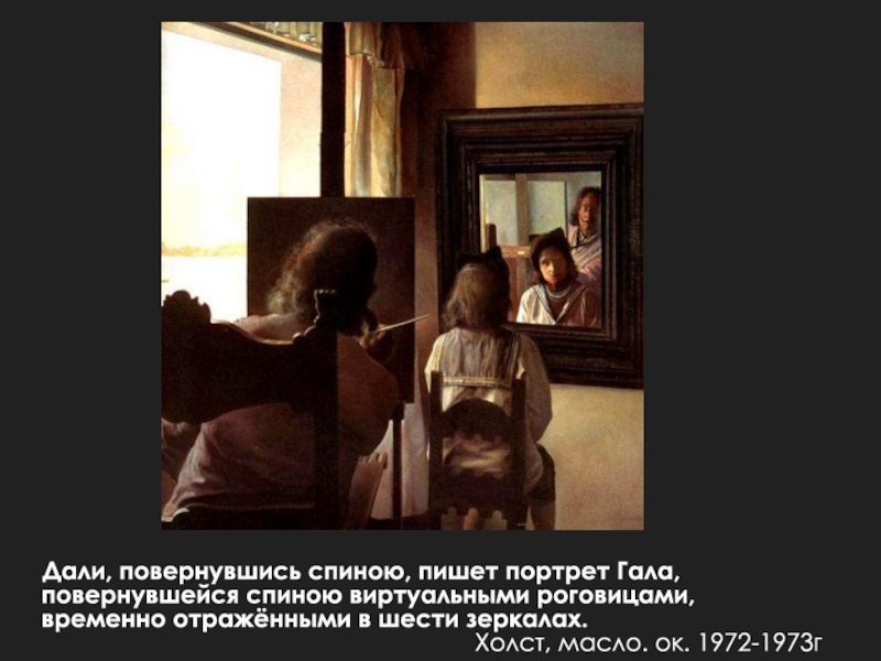Слайд 23 Дали, повернувшись спиною, пишет портрет Гала,