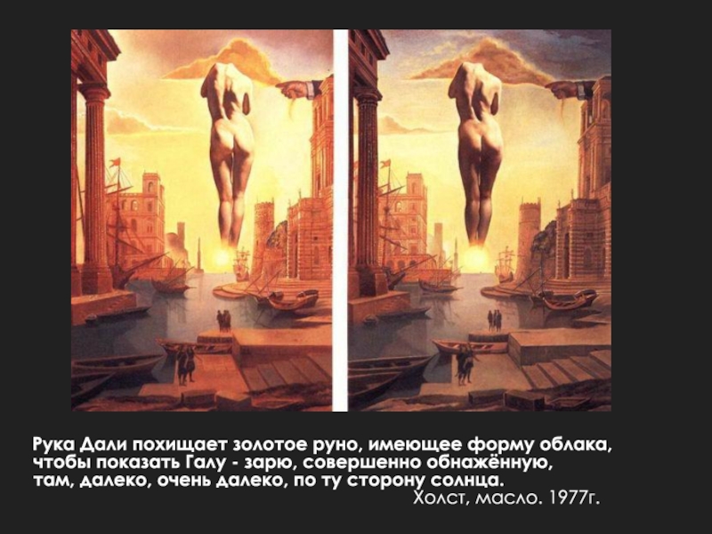 Слайд 25 Рука Дали похищает золотое руно, имеющее форму облака,