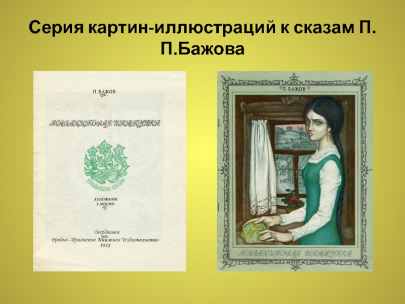 Слайд 11Серия картин-иллюстраций к сказам П.П.Бажова