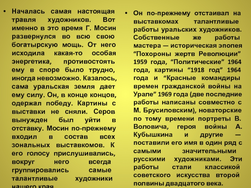 Слайд 9Началась самая настоящая травля художников. Вот именно в это время Г.