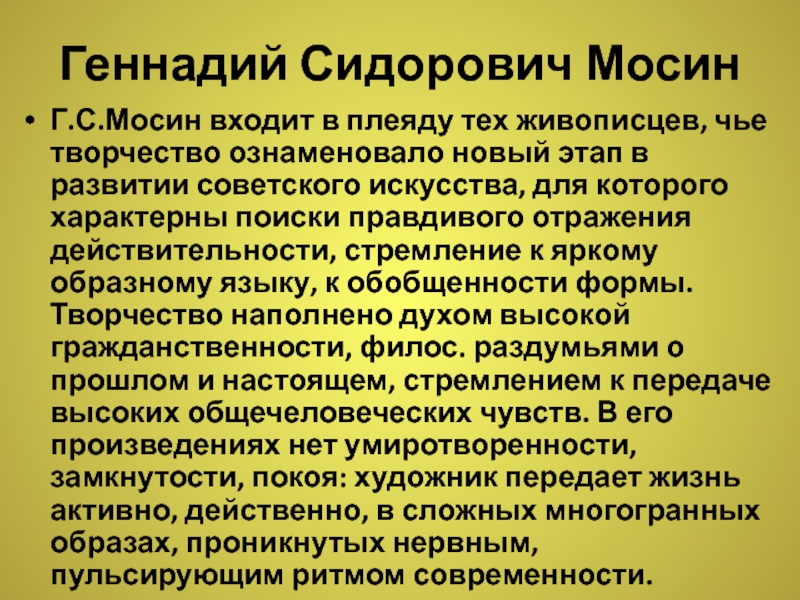 Г.С.Мосин входит в плеяду тех живописцев, чье творчество ознаменовало