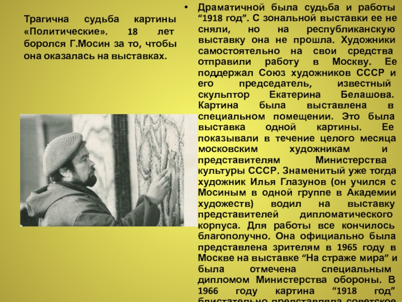Слайд 23Трагична судьба картины «Политические». 18 лет боролся Г.Мосин за то, чтобы