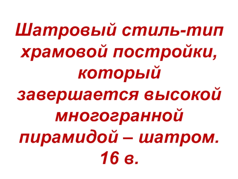 Слайд 41Шатровый стиль-тип храмовой постройки, который завершается высокой многогранной пирамидой – шатром.