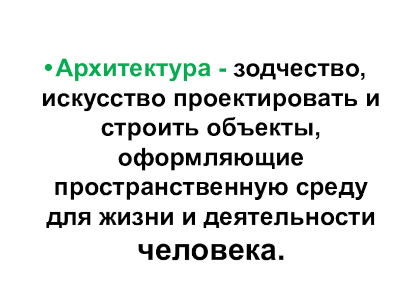 Архитектура - зодчество, искусство проектировать и строить объекты, оформляющие пространственную среду