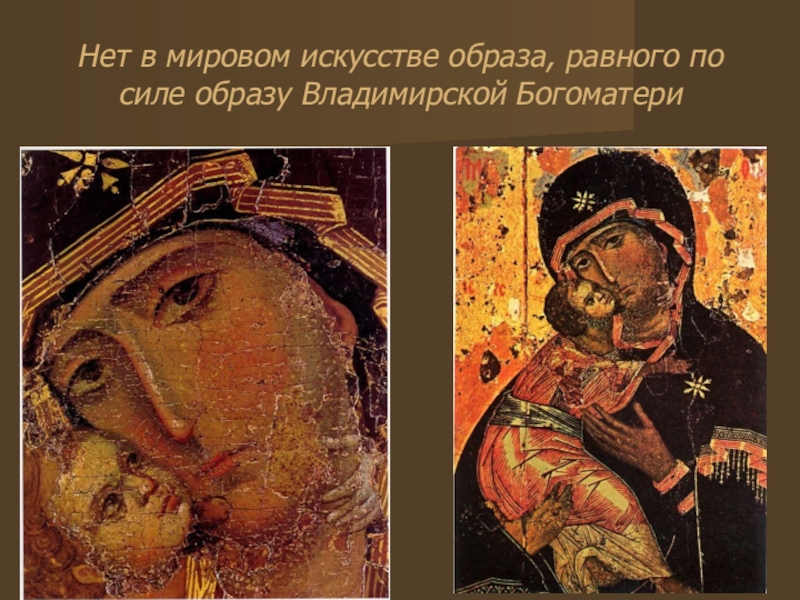 Слайд 28Нет в мировом искусстве образа, равного по силе образу Владимирской Богоматери
