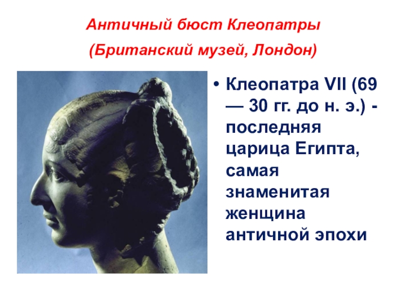 Античный бюст Клеопатры  (Британский музей, Лондон) Клеопатра VII (69 — 30 гг. до н. э.) -