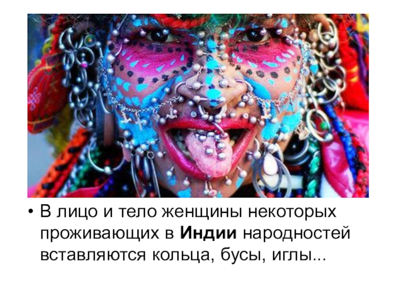 В лицо и тело женщины некоторых проживающих в Индии народностей вставляются кольца, бусы, иглы...