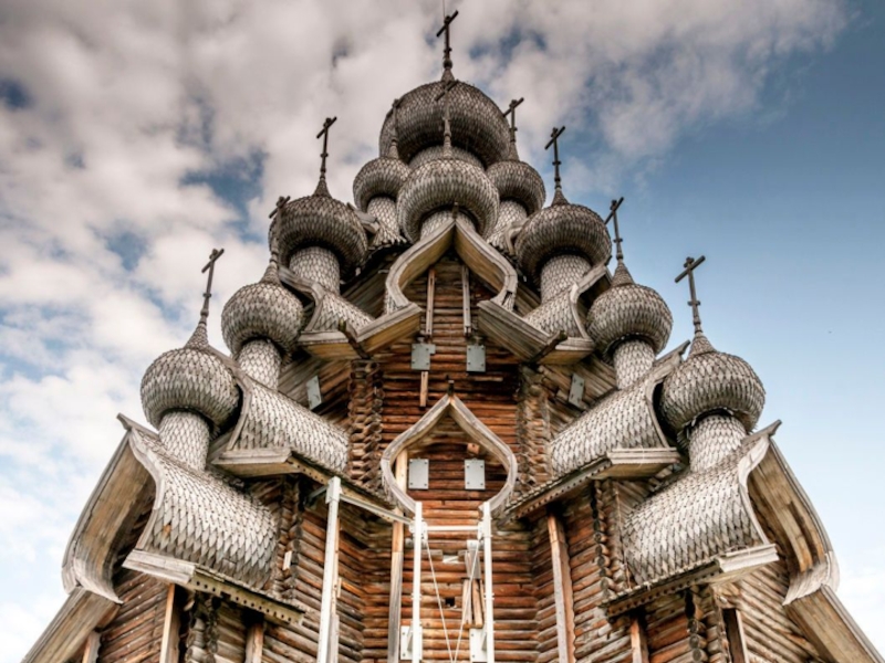 Деревянный храм 18 века в Кижах высотой 54 метра (и без единого гвоздя)