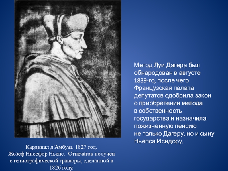 Жозеф Нисефор Ньепс. Отпечаток получен с гелиографической гравюры, сделанной в 1826 году.
