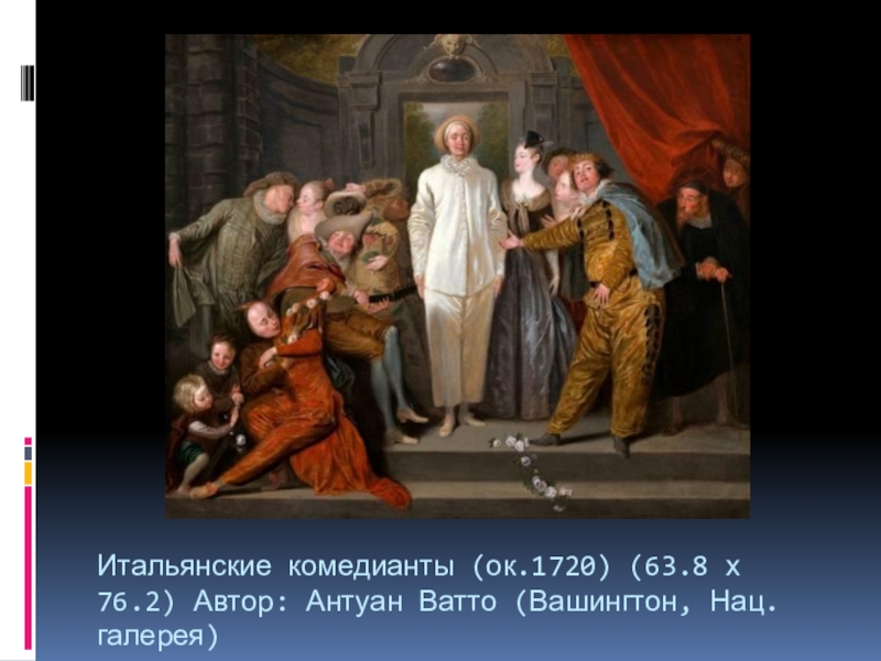 Слайд 20Итальянские комедианты (ок.1720) (63.8 х 76.2) Автор: Антуан Ватто (Вашингтон, Нац.