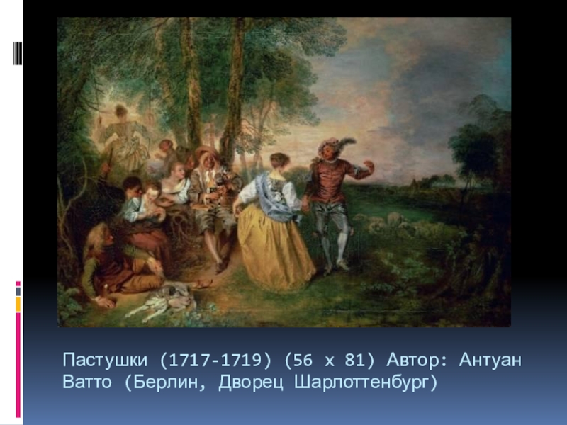 Слайд 31Пастушки (1717-1719) (56 x 81) Автор: Антуан Ватто (Берлин, Дворец Шарлоттенбург)