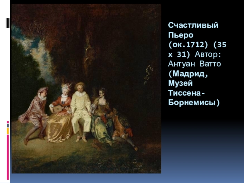 Слайд 10Счастливый Пьеро (ок.1712) (35 x 31) Автор: Антуан Ватто (Мадрид, Музей