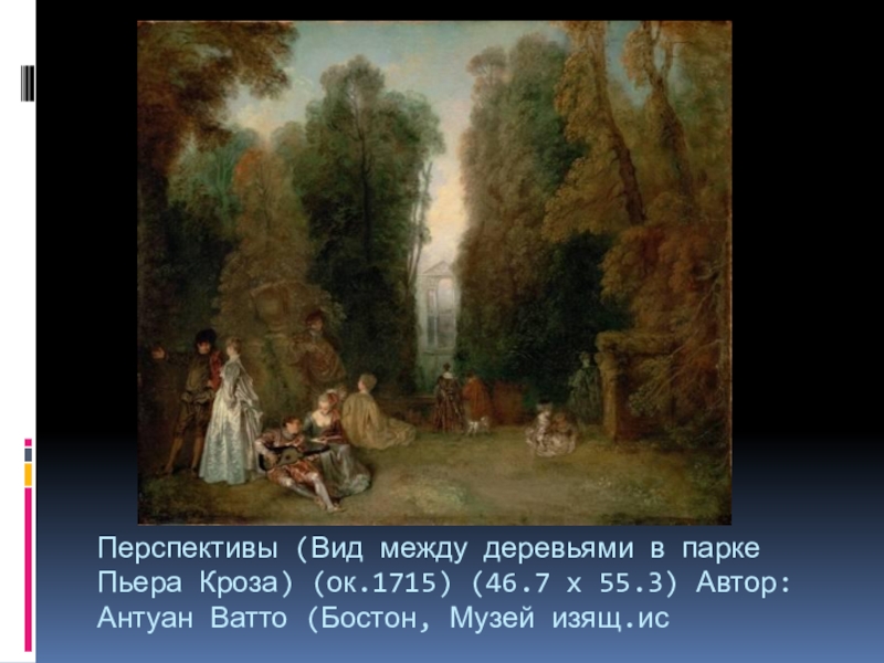 Слайд 29Перспективы (Вид между деревьями в парке Пьера Кроза) (ок.1715) (46.7 x