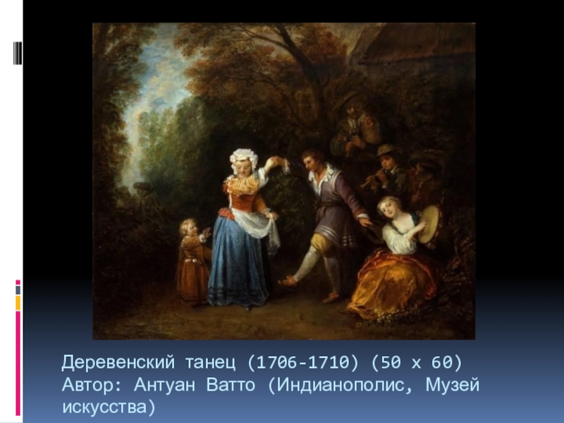 Слайд 23Деревенский танец (1706-1710) (50 x 60) Автор: Антуан Ватто (Индианополис, Музей