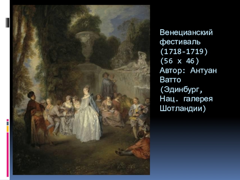 Слайд 24Венецианский фестиваль (1718-1719) (56 x 46) Автор: Антуан Ватто (Эдинбург, Нац.