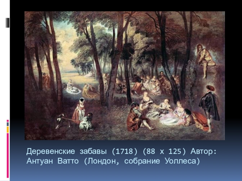 Слайд 22Деревенские забавы (1718) (88 х 125) Автор: Антуан Ватто (Лондон, собрание
