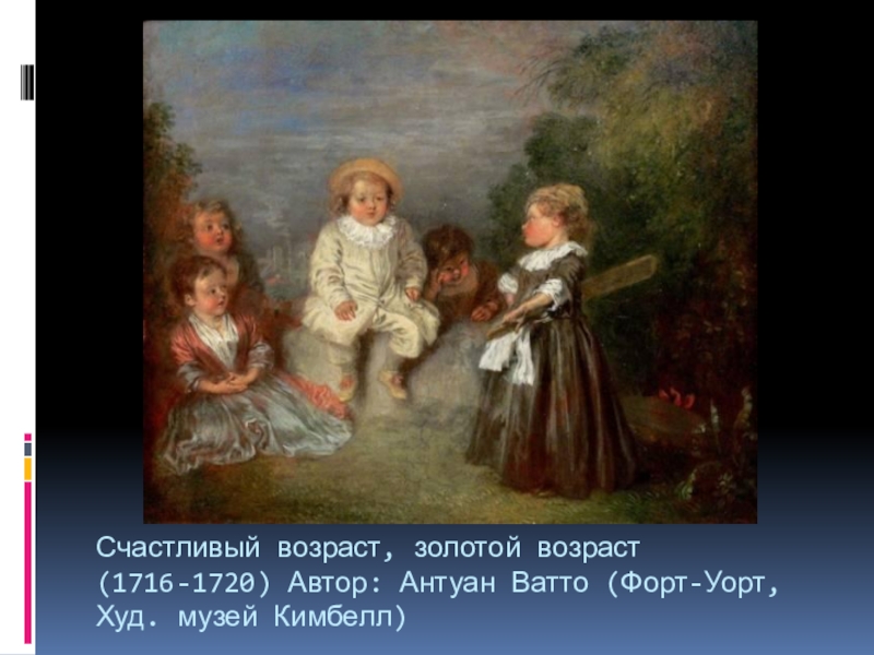 Слайд 33Счастливый возраст, золотой возраст (1716-1720) Автор: Антуан Ватто (Форт-Уорт, Худ. музей