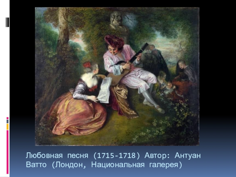 Слайд 27Любовная песня (1715-1718) Автор: Антуан Ватто (Лондон, Национальная галерея)